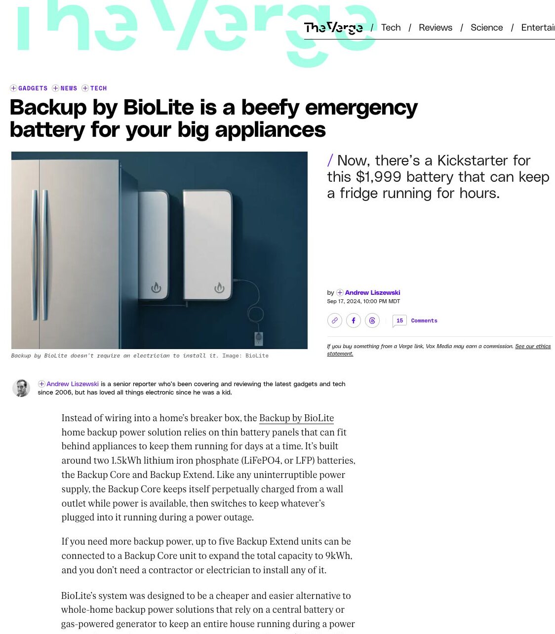 To validate market demand and build DTC momentum, BioLite launched Backup on Kickstarter, paired with a tightly choreographed media and influencer strategy.